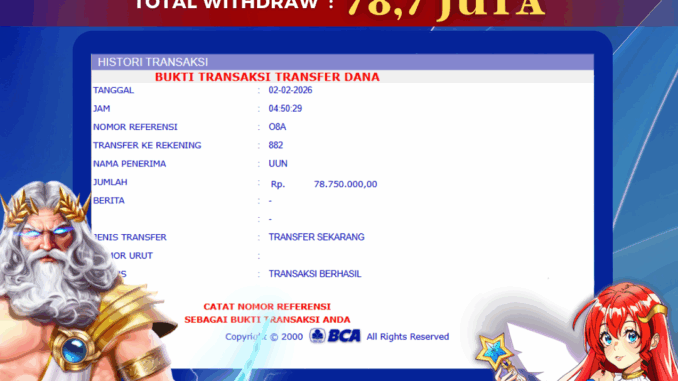 Bukti transfer yang dapat anda lihat adalah bukti SAH / VALID yang langsung di dapatkan melalui bukti transaksi dari Bank yang digunakan untuk pengiriman dana pada rekening pemilik user id. Terima kasih kami sampaikan kepada para pengguna setia BOLAGILA yang telah menggunakan situs kami, sebagai Bandar Terpercaya yang pastinya membayar semua kemenangan member hingga lunas. Apakah BOLAGILA PENIPU ? Reputasi “BOLAGILA TERPERCAYA” sudah sangat melekat.