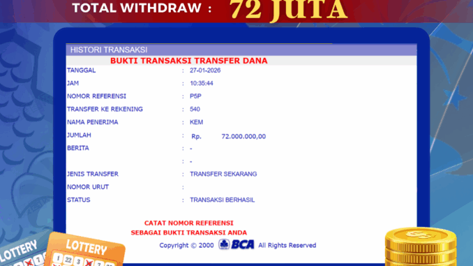 MEMBER BOLAGILA MENERIMA PELUNASAN JACKPOT TOGEL DI LATO LATO 3D Rp 72.000.000,- LUNAS